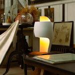 The Grande B Table Lamp serves as a decorative sculpture by day and a soothing source of light at night. The organic curves of the lamp gently guide light from the LED light source both upwards and downwards while limiting unpleasant glare. On/off switch located on cord.