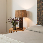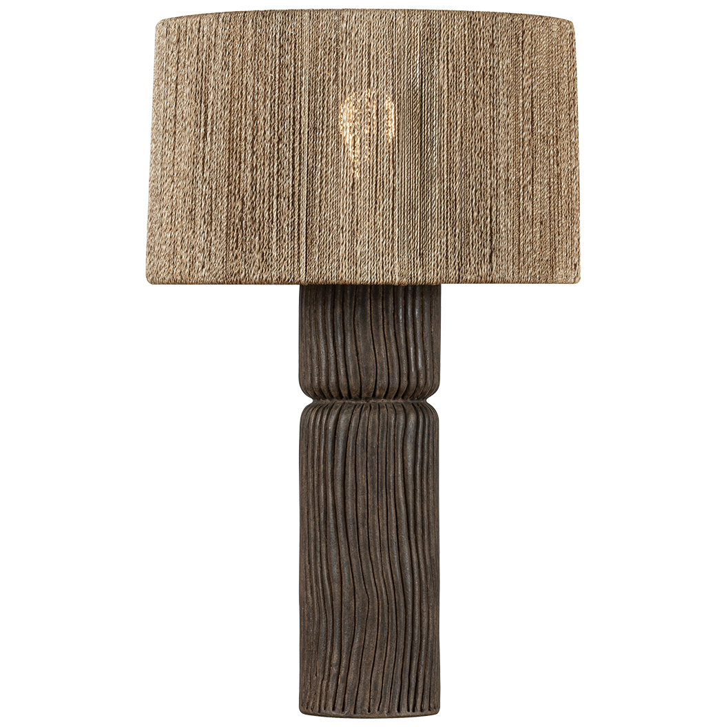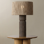 Celebrating natural texture and form, the Folk Table Lamp pairs an earthy ceramic base with a handwoven abaca string shade. Raked grooves along the cylindrical base echo the shade's flowing strands, creating sculptural harmony and vertical movement. Patina Brass hardware adds a subtle touch of refinement to this richly layered design. On/off switch located on socket.Note: Due to the one-of-a-kind nature of the medium, exact colors and patterns may vary slightly from the image shown.
