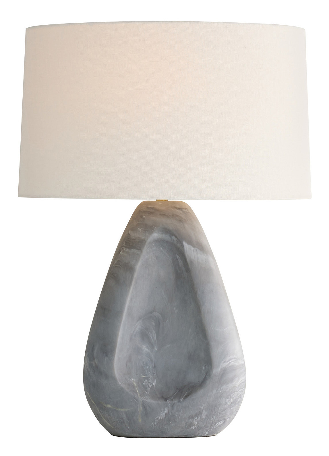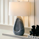 The Nathan Table Lamp brings a sculptural beauty to your interior space. The triangular body is topped by a textural oval shaped linen shade that casts warm shadows across your room. Three way switch is located on the lamp socket.