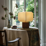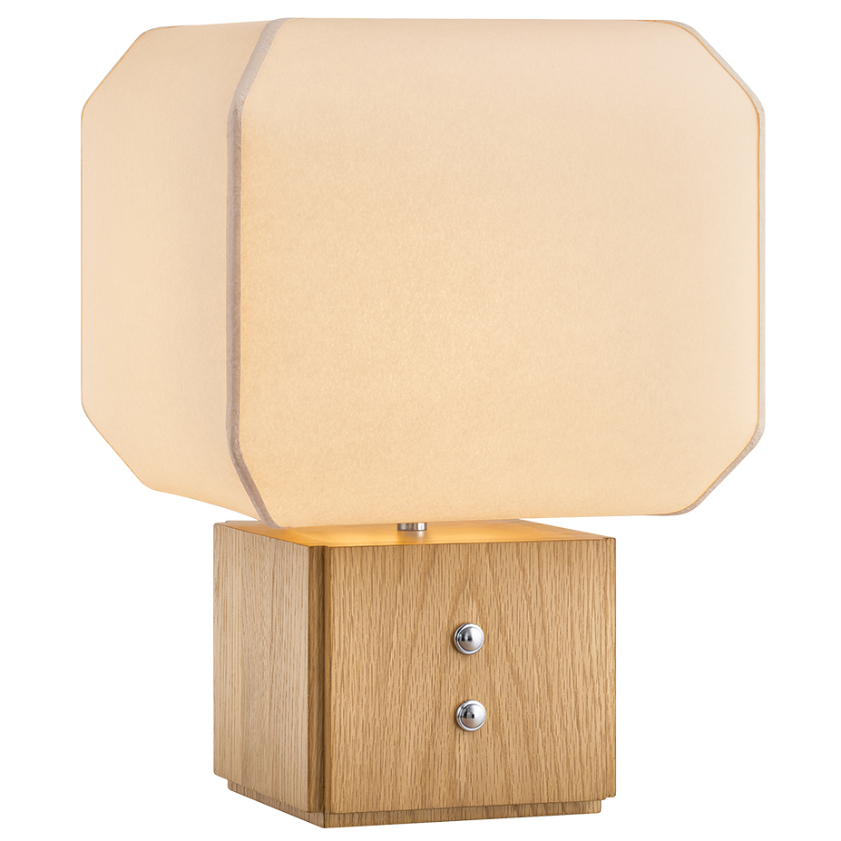 The Brice Table Lamp is a study in contrastpairing lightness and structure through a sculptural, design-forward silhouette. A handmade paper voluminous shade, appears to gently billow from its solid white oak base, evoking a sense of quiet movement. Decorative Polished Nickel buttons lend a subtle detail that elevates the piece with just the right edge. On/off switch located on cord.