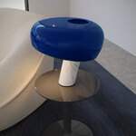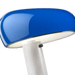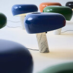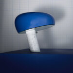 The Snoopy Table Lamp is named for the beloved cartoon character and features a distinctive, light-hearted shape. Provides direct light through a thick glass disk and an enameled reflector complemented with a White Marble base. Touch sensor dimmer and 8 foot cord.