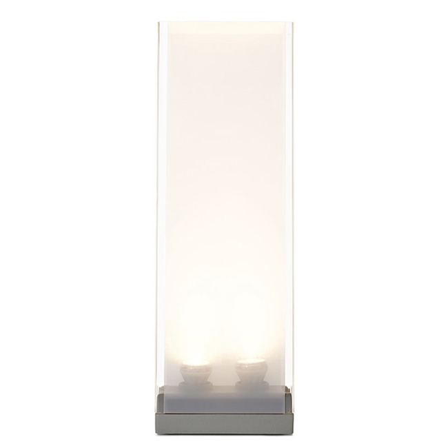 Cortina table lamp features a clear shade with a white diffuser and a grey powder coated base. The timeless Cortina lamp is architectural simplicity. Its alluring translucent fabric diffuser shields the lamp's dimmable light source. Cortina allows you to set any mood depending on the moment. UL listed components. In-line rotary dimmer.