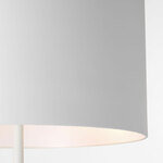 The Spinet Floor Lamp brings a modern simplicity to your interior space. The slim stem, on a trumpeted base, seems to piece through the shade that casts warm shadows across your room. Dimmer switch is located on the lamp socket.