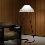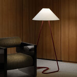 The Hat Floor Lamp is a tribute to 1950s French design with an neatly tailored, essential silhouette. The shade is available in classic linen or modern Tyvek, both offering a rich texture along with the stylish rope that covers the lamp's frame. Hat's balance of craftsmanship, materiality, and a contemporary vision make it an elegant addition to any interior. Dimmer footswitch located on cord.