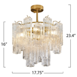 The Sophia Semi Flush Ceiling Light captivates with its cascading arrangement of ornate Tronchi style clear glassware, reminiscent of shimmering icicles. Each glass element delicately refracts light, creating an enchanting glow, while the warm brass frame provides a refined contrast, evoking a sense of luxury. Perfect for classic and modern interiors alike, this design transforms any space into a haven of timeless beauty.