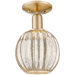 The Preston Globe Semi Flush Ceiling Light brings timeless elegance to your interior space. Its sleek frame supports a fluted, globe shaped handblown glass shade that diffuses a warm, inviting glow throughout your room.