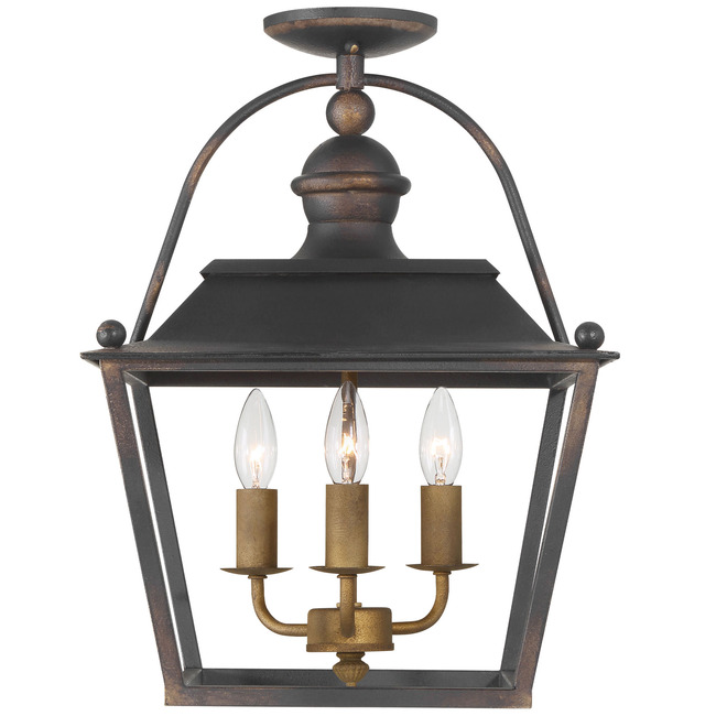 The transitional look of the Christoff Semi Flush Ceiling Light works well with industrial and farmhouse styles. Details showcase the hand-forged artisan metalwork of these hand-crafted fixtures. Rusty accents of gold can be found peeking through the Antique Black Iron finish on the open-cage frame and sweeping candelabras. These details reinforce the industrial or vintage-inspired aesthetic.