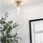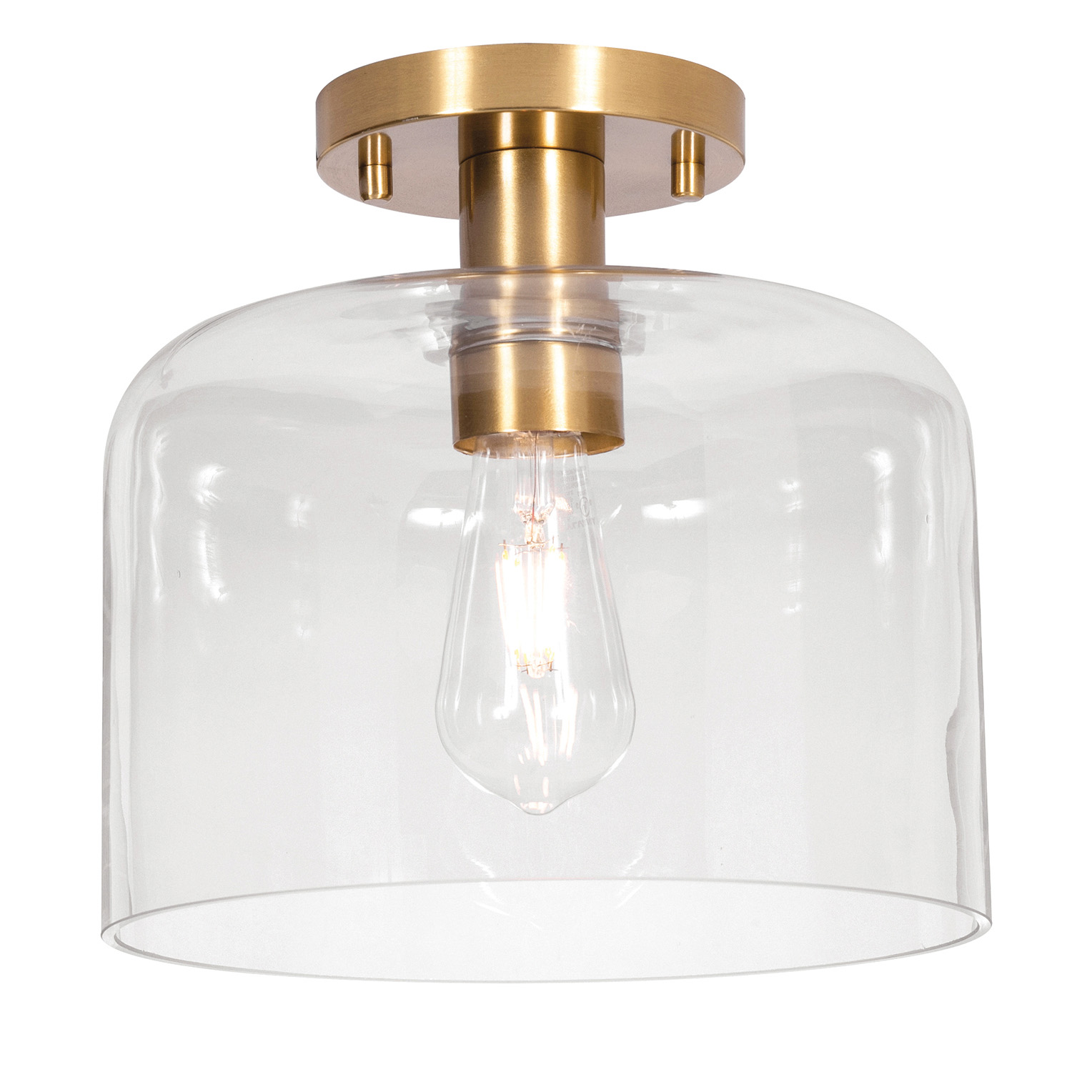 The Elsa Ceiling Light features modern twist on an Edison light bulb. An open glass shade adds visual interest, displaying a soft, decorative bulb. Change the bulb shape to alter the style.