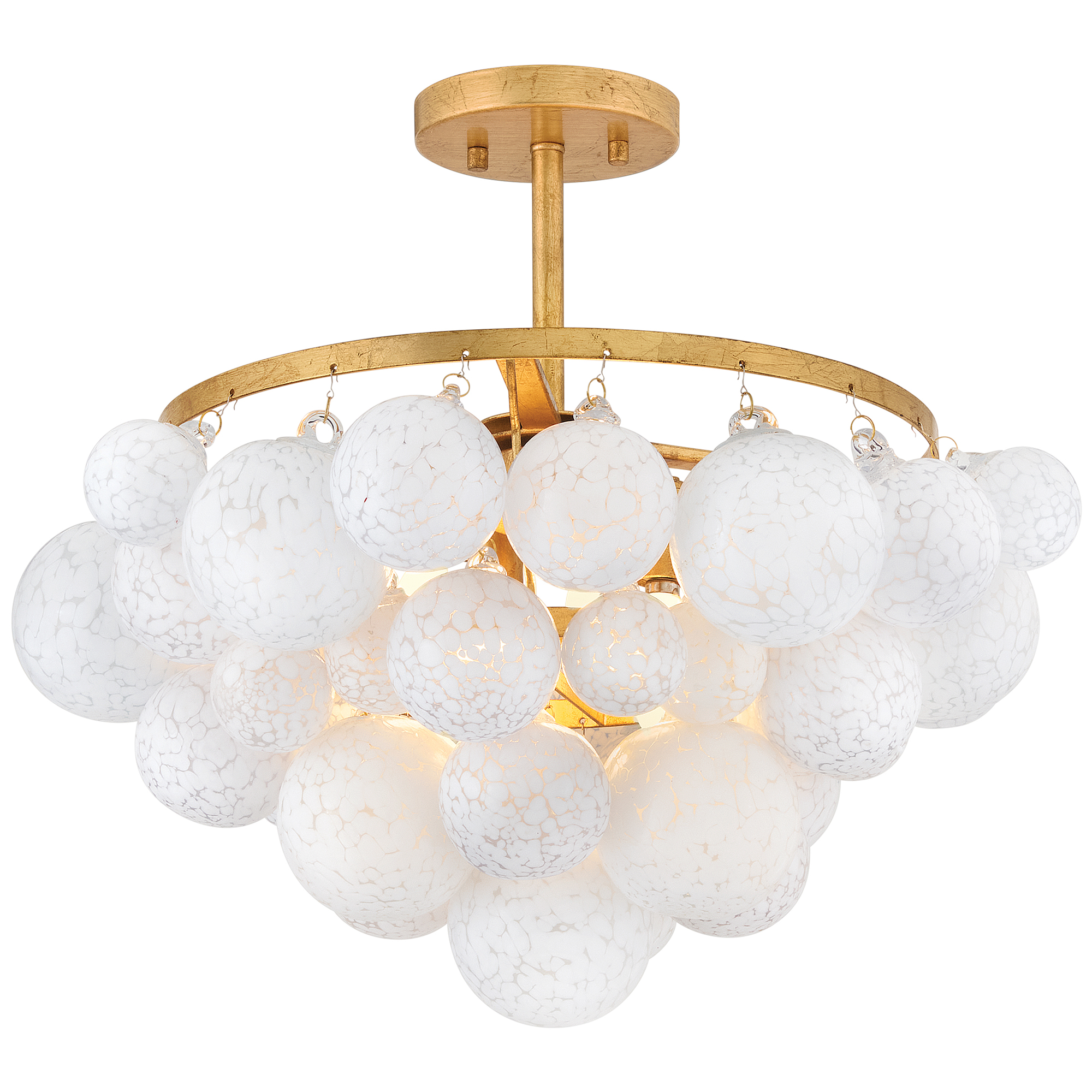 A stunning cluster of hand-blown art glass spheres adorns the Marabel Semi Flush Ceiling Light's luxe design, creating an elegant shade of enchanting illumination as warm light is diffused from candelabra lamps.