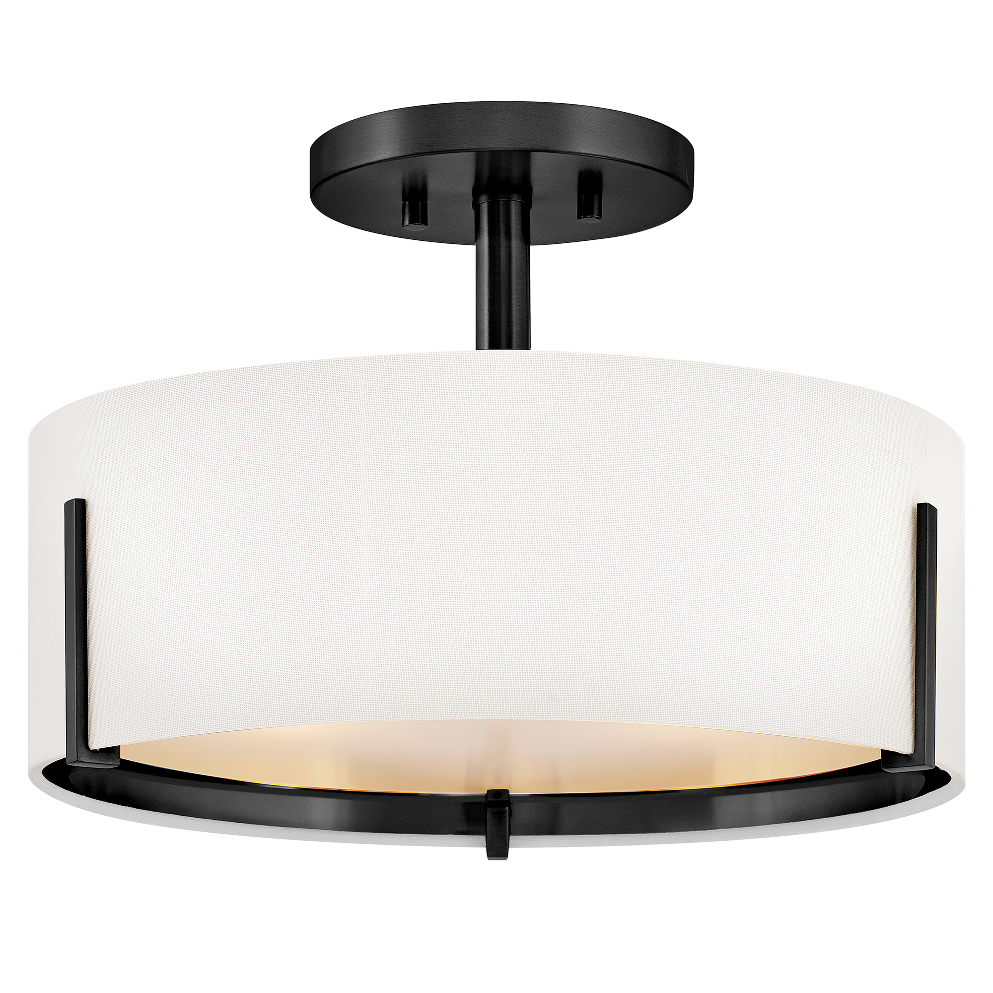 A transitional staple, the Halle Semi Flush Ceiling Light's simple yet stunning Off-White Linen drum shade features an elegant Etched White glass diffuser. A minimal three-pronged frame is finished in a complementing finish to easily accompany both modern and traditional dcor styles.