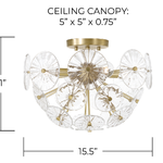 The Emelie Semi-Flush showcases a radiant, nature-inspired design with an expressive burst of glass elements arranged in a striking star-like formation. Each textured glass piece reflects and diffuses light beautifully, creating a lively and dimensional glow. The sculptural framework enhances the fixture's visual impact, delivering a refined yet eye-catching presence.
