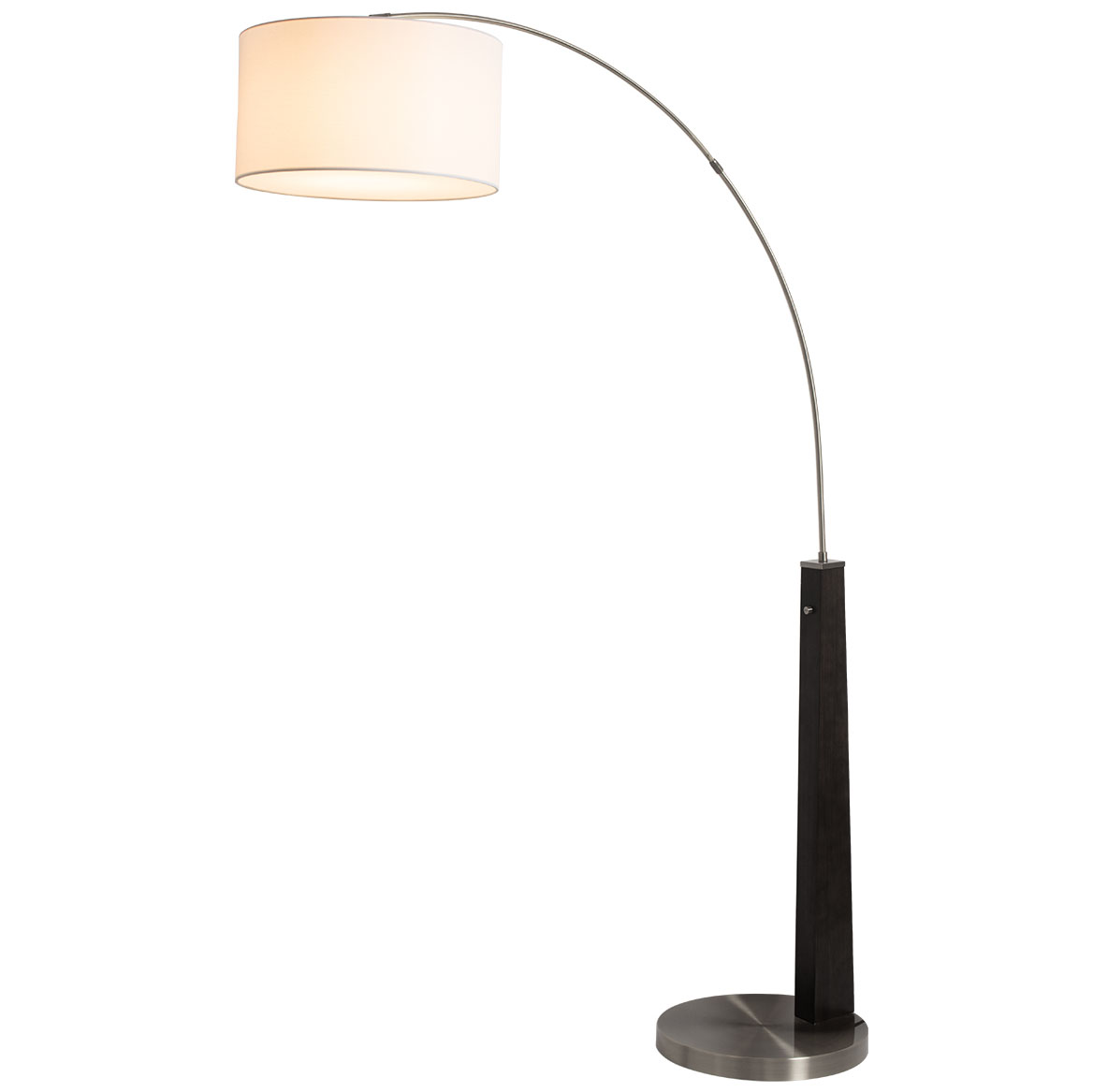 The Taper Arc Floor Lamp, designed by Jeffrey Botwin in 1998, is a striking fusion of black wood and satin nickel that brings sleek, modern sophistication to your space. With its white cotton-linen shade and steel base, the Taper Arc floor lamp is designed to elevate your home decor. Slide foot dimmer on cord.