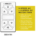 Includes a 6 inch downrod and HIRO 3-speed reversing fan control. Optional wifi receiver and accessories sold separately.