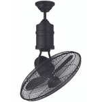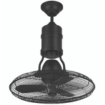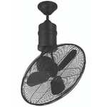 Bellows III Ceiling Fan adds a retro, industrial vibe to your indoor space. The heavy-duty 3 speed reversible motor cranks out airflow, as the caged fan tilts at 90 degrees and rotates 360 degrees. Pre-Paired wall and remote controls included. Dual mount (flat or angled ceiling up to 23 degrees). Not light kit adaptable. 4 inch downrod included.