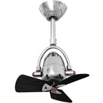 The Atlas Fan Diane Wood Ceiling Fan is an oscillating directional fan that provides maximum, multi-directional airflow. Designed to be hung in small, awkward spaces or in front of HVAC ducts to make more efficient the heating, ventilation, or air conditioning of any room. AC motor construction of cast aluminum and heavy stamped steel in Polished Chrome, Matte Black, Brushed Nickel or Textured Bronze finish with Black, Barnwood, or Mahogany tone solid wood blades. Features a 16 inch blade span and 19 degree pitch. 90 degree forward and reverse sweeping oscillating function. Includes a vaulted ceiling canopy for up to 29 degrees, 10 inch downrod, and a 3-speed RF remote control in Black. ETL listed. Suitable for damp locations. Limited lifetime warranty.