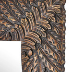 The Schwarzwald Mirror features a contemporary interpretation of an ornate portrait frame. Substantial in size, the wood frame is intricately carved with pomegranate and acanthus leaf motifs. An antique gold finish adds depth and texture. Due to the artisanal finish, the surface of each frame can differ slightly.