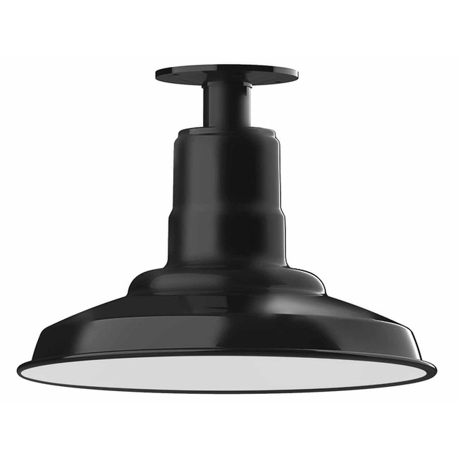 The Warehouse Outdoor Ceiling Light Fixture brings a bold industrial vibe, inspired by 1920's industrial lighting, to your exterior space. The stepped shade, lined in white, casts warm light across your area. A polyester powder coat finish provides color retention and scratch resistance.