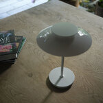 The PH 80 Portable Lamp brings a clean decorative look to your interior space. Based on the principle of a reflective three-shade system, PH 80 directs the majority of the light downward while minimizing unpleasant glare. The PH 80 Portable Lamp is a modernized version of the PH 80 lamp, originally released in 1974 as a tribute to designer Poul Henningsen, that has been outfitted with a rechargeable battery and built-in LED light source. A dimmer button on the lamp's base allows for stepless dimming or 4-Step dimming (100% / 45% / 20% / 5%), and the lamp's color temperature warms from 2700K to 1800K as it is dimmed. Includes USB-C charging cable (wall plug adapter is not included).