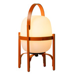 The Cestita Alubat Table Lamp features an aluminum structure and closed balloon like shape that holds the integrated LED module. The lamp's handle allows it to be easily carried and placed wherever additional light is needed, both indoors and out.