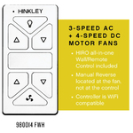 Includes a 6 inch downrod and HIRO 3-speed non-reversing all in one remote to control power, speed and lighting (use as a wall control or portable remote). Optional wifi receiver and accessories sold separately.