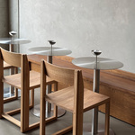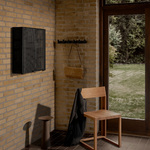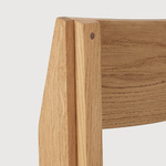 The Outline Chair features a minimalist, simple aesthetic, easily fitting into any interior design style. The piece is crafted of lacquered oak, with walnut details and a brushed aluminum footrest. Perfect for a kitchen, dining table, or even desk.