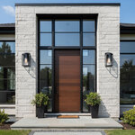 The Lakewood Outdoor Wall Light brings a clean, classic look to your exterior space. The smooth frame hold curved glass panels that cast warm shadows of light across your area.