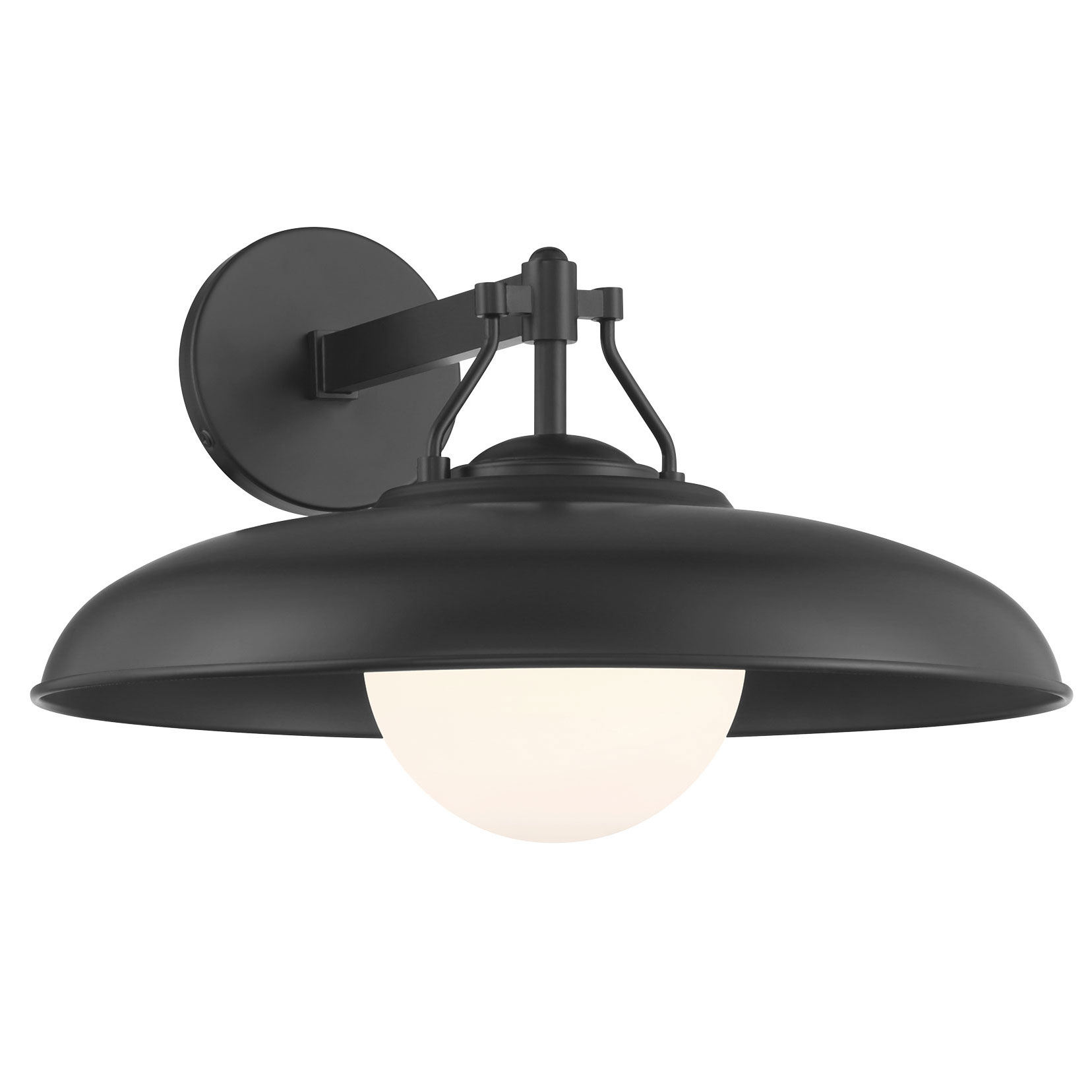 The Cameo Shores Outdoor Wall Light features a cast aluminum construction in a coal finish with Etched Opal Glass.