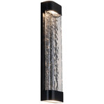 The Moondew Outdoor Wall Sconce brings a clean look to your exterior space. The hand-crafted glass and metal elements enhance your outdoor area. Light glows internally to showcase the texture while additional light at the top of the bottom further illuminates your space.