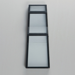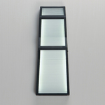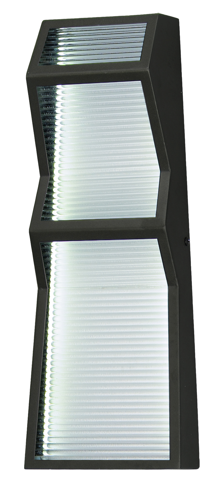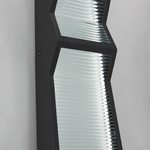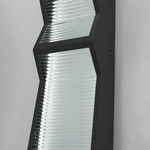The Totem Outdoor Wall Light brings a clean, contemporary look to your exterior space. The smooth frame is complemented by zigzag towers of ribbed glass that cast warm shadows of light across your area.