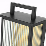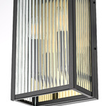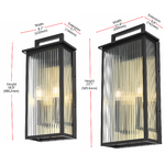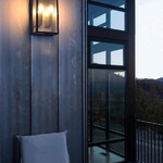The Kannon Outdoor Wall Sconce blends traditional and modern aesthetics. The lantern silhouette has clean, minimalistic lines, with ribbed glass plates that showcase a decorative bulb. Ideal for a front porch or deck.
