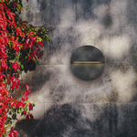 The Mona Lisa Outdoor Round Wall Sconce is a wet location exterior wall fixture which lays flush to the wall. It can be positioned as either an up or a down light as an accent to any home.