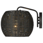 Natural materials and a dark finish make Vail a great addition to modern exteriors. Welcome guests with warmth and casual elegance. This wet-rated outdoor sconce features Black Rattan Wicker formed into a stylish drum. A circular glass shade sits behind the wicker shade encasing the lamp source. A protective UV coat ensures that the lightly textured Natural Black finish will look great for years to come. The modern look complements trending outdoor furniture options. Create the perfect outdoor space with this Contemporary fixture.
