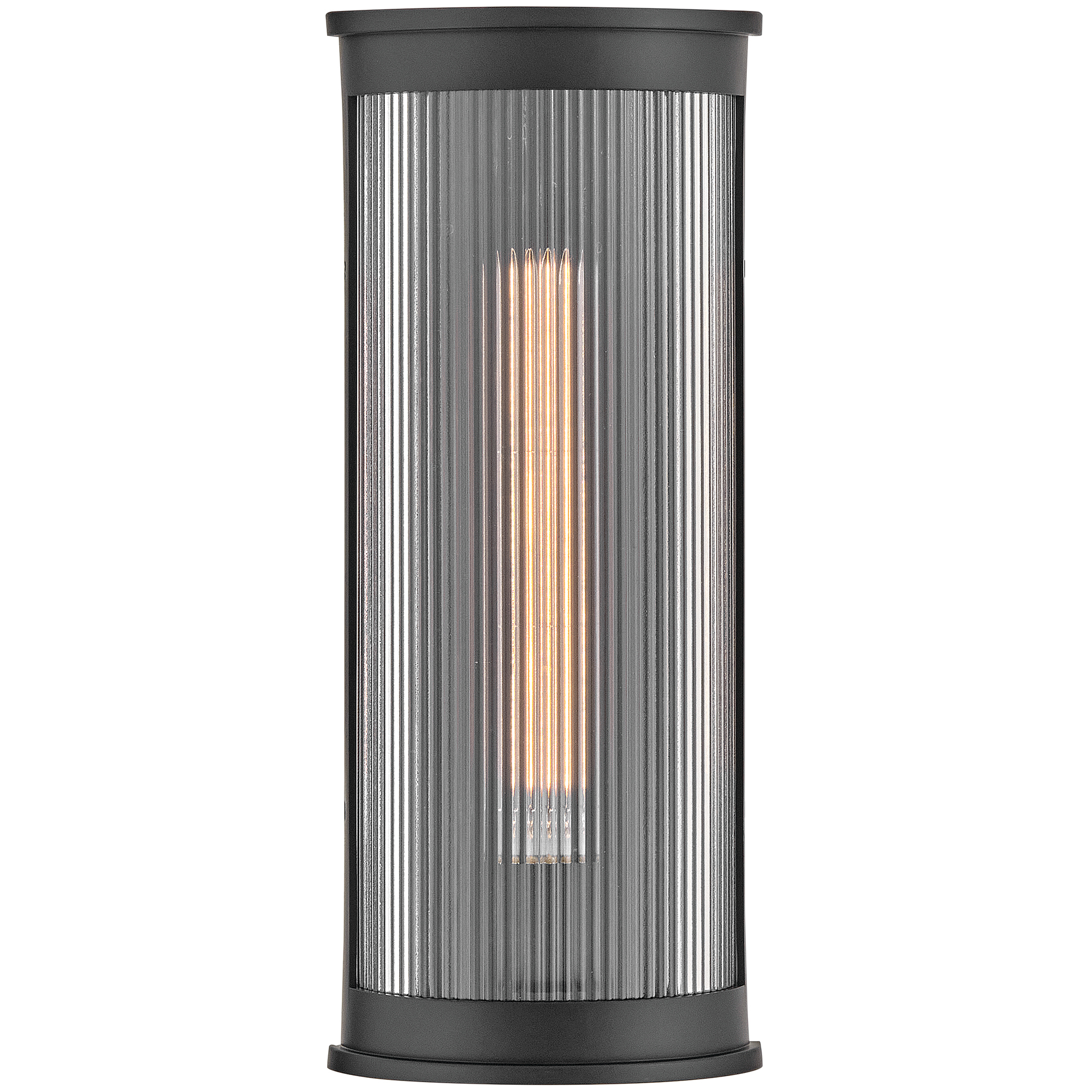 Combining timeless design with modern durability, the Bluffton Outdoor Wall Sconce's refined contours bring sophisticated style to outdoor spaces. Visually striking, clear, ribbed glass casts beautiful refractions, complemented by a resilient composite frame in an anti-fading finish.