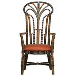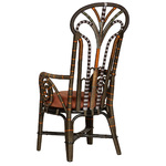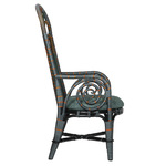 The Benin Throne Green Armchair is a tribute to the classic ratton Peacock chair silhouette. A symbol of bohemian luxury, this colorful, dramatic design comes in green with Linho Adobe linen-cotton blend upholstery or brown with Trevino Julep silk-cotton blend upholstery. Perfect for adding a global design flair to a sitting room or den.