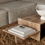 Originally inspired by Japanese minimalism, the Distinct Coffee Table features the creation of a complex structure based on the repetition of a single element. The simple lines of the silhouette contrast with richness of the travertine's earthy textures. With the natural and diverse qualities of the sand-colored limestone, it provides rawness and tangibility that highlight the piece's architectural character.