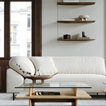 Drawing inspiration from museum display cases, the Parallel Coffee Table forms the perfect space for a small home gallery. By lifting the top glass, the space below becomes an sleek exhibition area for mementos and decorative objects in a den or living room.