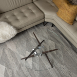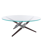 The Crux Coffee Table brings a striking, elegant touch to any interior. Its Maple Espresso wood legs pair seamlessly with a central steel accent and a sleek glass top, creating a refined, contemporary look. Handcrafted by artisans in Vermont, USA.