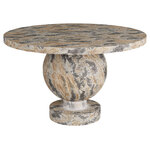 The Brenna Entry Table will add a stunning accent piece to any foyer with its geometric silhouette. The circular tabletop is supported by a spherical pedestal base. Brenna is made of concrete and finished with hydrographic marble-like pattern. Due to the nature of the finishing process, the color and veining of each table will possess unique variations.