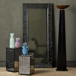 The Mosaico Accent Table fuses texture, craftsmanship, and effortless design. Its doors are covered in a mosaic of antiqued mirror squares hand-placed to fit perfectly in a mango wood frame. A plinth base that adds a refined finishing touch.