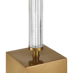The Desiree Drinks Table is bursting with geometric glamour. The tall block base is crafted from metal and hold a rod-like stem of brilliant crystal. An eye-catching seeded glass square top creates the finishing touch.