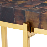 The Casey Accent Table is a stunning minimalist masterpiece. A top surface covered in a mosaic of shells and inset into the metal frame like a gem. Choose between an earthy pen shell brown or a glamorous mother of pearl top. The sleek legs are finished in a warm brass and are connected by an x-shaped stretcher.