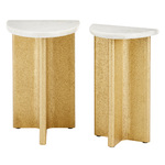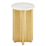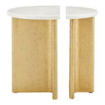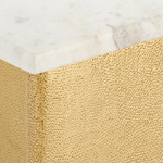 The Doublet Accent Table Set includes two pieces, which can stand individually or be placed together to form an oval table. The bases are wrapped in hand-hammered brass sheeting, with an intricate swirling serpentine texture. The white Banswara marble tops creating the striking final touch.