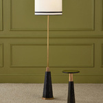 The Gieves Drinks Table is masterpiece of design, perfect for a classic home. At the base, a bronze cone shaped pedestal sits atop a an antique brass finish plate. A sleek black granite top completes the piece.