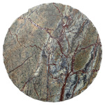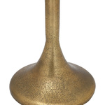 The Wilderness Drinks Table showcases a stunning green forest marble top, complemented by the antique brass finish. Its slender cast aluminum body rises from a round base and features natural pitting for added texture. For a final touch, the marble top has a rough-cut edge for a visually arresting appeal.