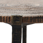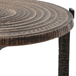 Inspired by metalwork artifacts from the Bronze Age, the Unity Accent Table features a raised concentric pattern, finished in antique brass. A dark bronze finish on the frame creates subtle contrast, gathering into zig-zagging indentations for a tactile effect. Due to the artisanal material, the surface may vary slightly from table to table.