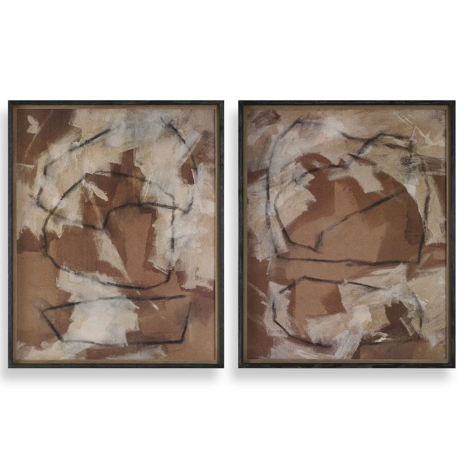 The Rush and Dash Framed Prints are a dynamic duo of modern style. To capture the energy of movement, black accent lines seem to dash across the canvas, sailing over earthy of brown and cream tones. Hang these as solo standalone pieces or pair together for dramatic effect. May be hung horizontally or vertically.