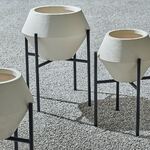 The Nova Planter brings a decorative beauty to your space. The crushed, natural white limestone body is perfect for hold real or artificial greenery and sits on a powder coated metal stand. May be used indoor or outdoor.