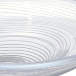 Like a wave captured in motion, the Bonaventure Bowl is full of dynamic and ethereal energy. The pale gray mouthblown glass features delicate textural striations across its surface, achieved by swirled while thin white glass rods around and into the bowl. The shape is realized when molten glass is allowed to drop from the blowing pipe into an orb and is carefully shaped by hand before being cut at the top with scissors to form its final silhouette.
