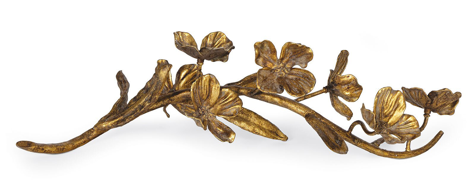 The Dogwood Sprig Sculpture, inspired by mother nature, appears handpicked and dipped in antique gold, capturing the perfect Spring day, forever. This tabletop accessory will bring texture and warmth to your space any time of year. Use it to create balance and interest on an etagere or bookshelf.
