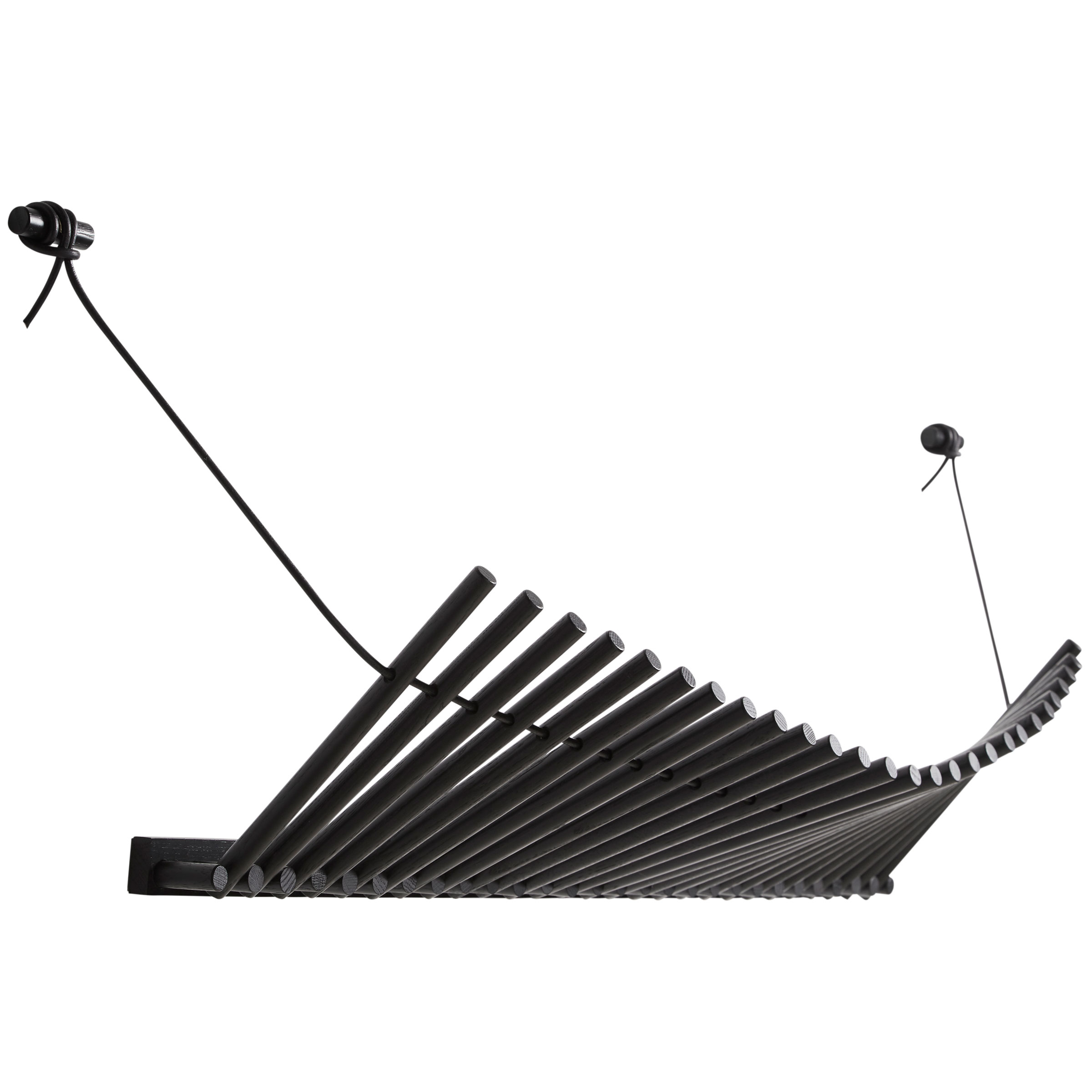 The Knaegt Coat Rack is a functional combination of a coat rack and hat shelf with a rich visual texture to accent any wall. Knaegt is constructed from wooden rods strung together with a leather cord. Each rod can serve as a coat hanger, while hats, gloves, and other essentials can be placed on top of the shelf. Maximum shelf weight capacity 22 lbs.